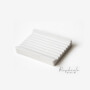 Porte savon de forme rectangulaire avec des stries pour évacuer l’eau. Porte savon en béton fibré avec un vernis de protection.